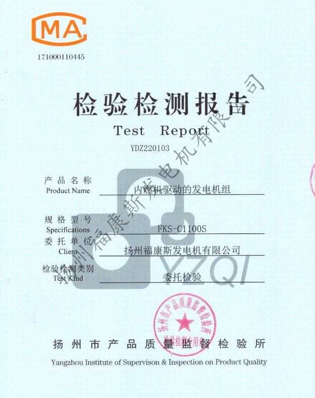 1100kw检验检测报告