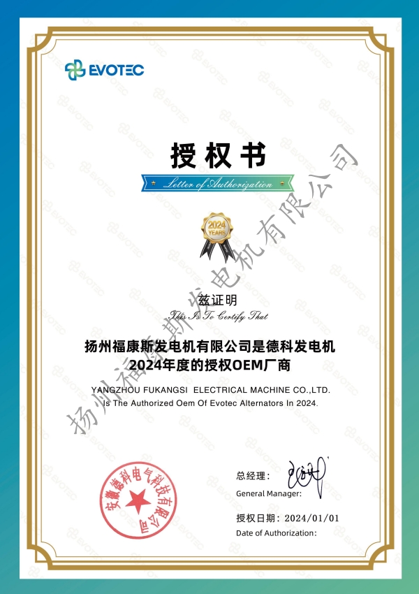2024年德科发电机授权