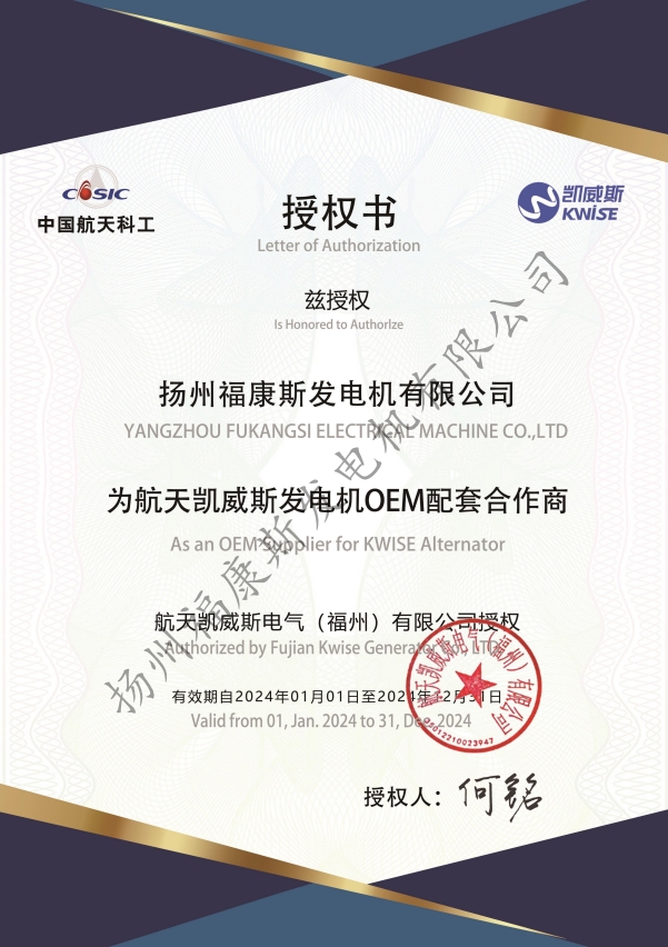 2024年航天凯威斯发电机授权
